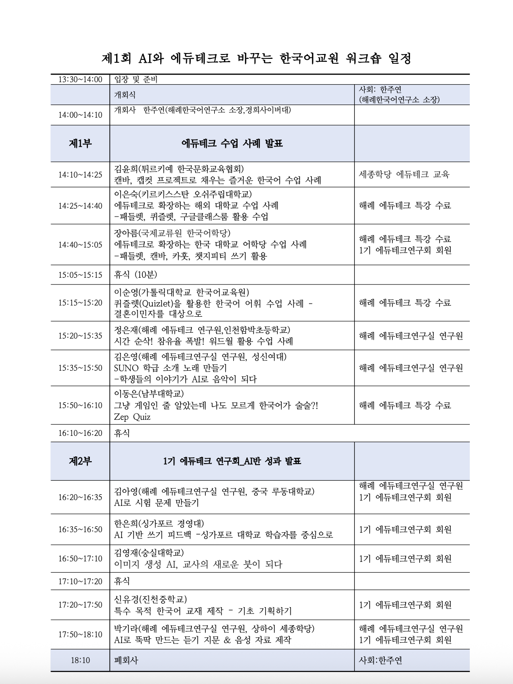 제1회 AI와 에듀테크로 바꾸는 한국어수업 워크숍 (자세히 알아보기)