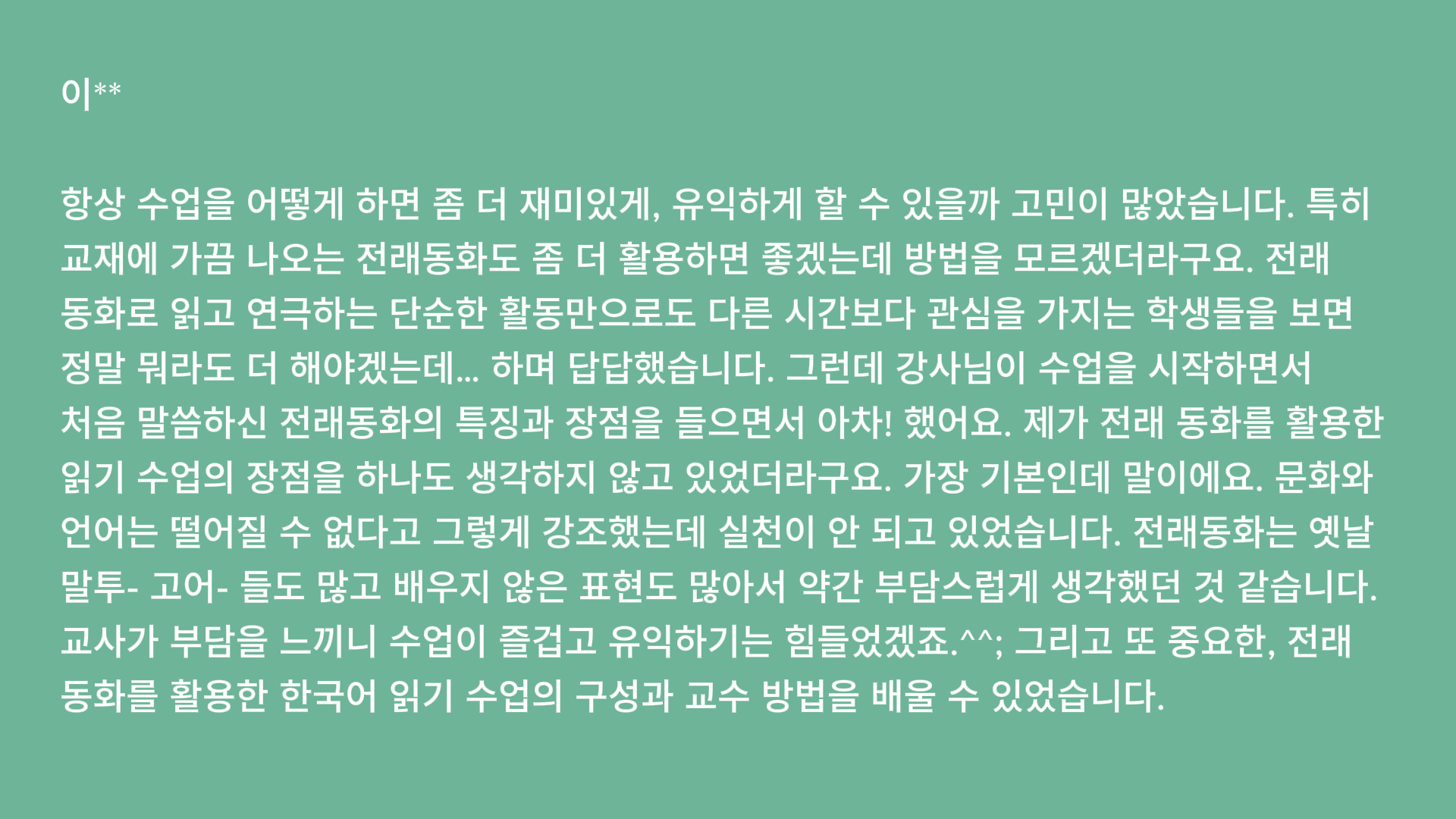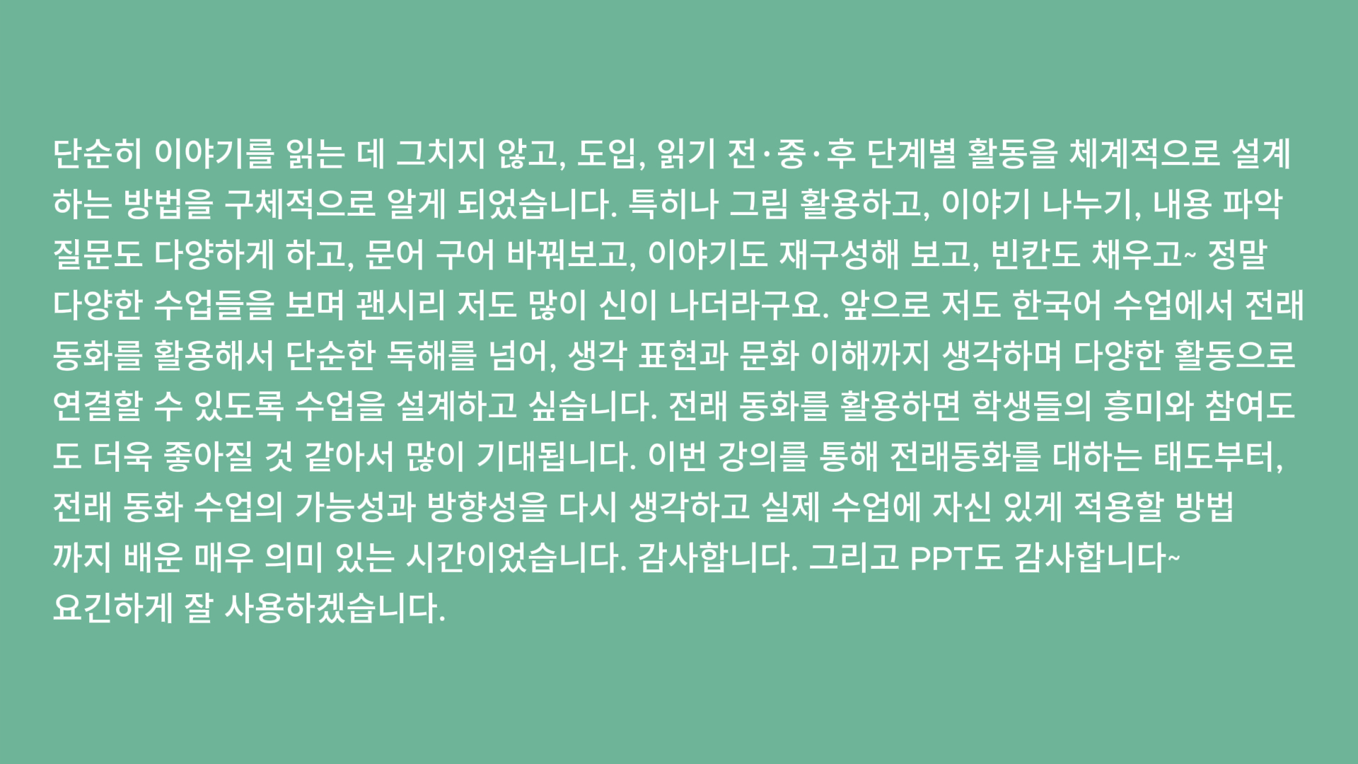✅ "전래동화 수업을 해 보고 싶은데 방법을 모르겠다."